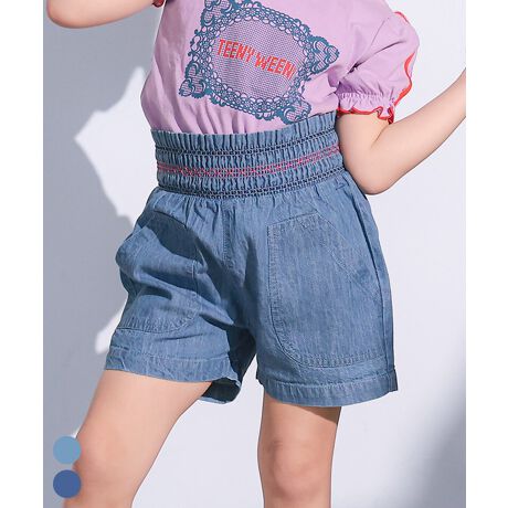 やわらかデニムで毎日使えるらくちんショートパンツ