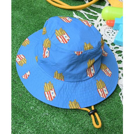 ツバ広のシルエットに加え、あご紐付きで実用性も◎。