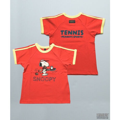 ラケットを持つスヌーピーのイラストが目を惹く、元気いっぱいのプリントTシャツです。