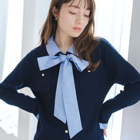 首元にはボウタイを施しており、ガーリーなテイストを楽しむことができます。