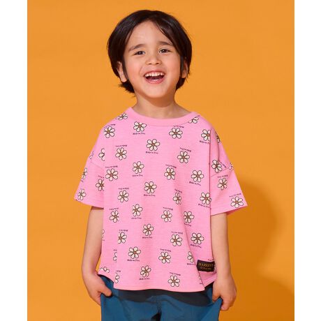 やわらかな配色と総柄デザインがかわいい半袖Tシャツです。