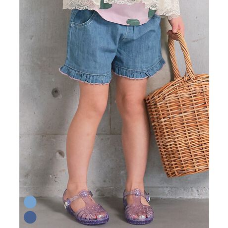 フリル使いがかわいいデニムショートパンツ