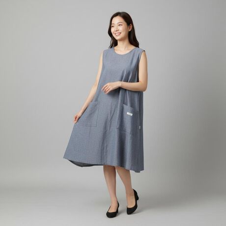 【ナチュラルな着心地】バッククロスでさっと着れる、綿100%の心地よいエプロン【かぶるだけで着られる手軽さ】頭からサッと着るだけで準備OK。紐もボタンもないからストレスフリーな着脱。【大きめポケットが便利】正面に2つの大きめポケット付きで、スマホや小物をサッと収納できる仕様!【後ろ姿も抜かりないフリークロス】背中まですっぽり隠れる安心設計。お尻周りを気にせず動ける快適な仕様。【インド綿の優しい風合い】綿100%のインド綿を使用し、肌に優しく柔らかな着心地を実現◎【ナチュラルテイストが魅力】シャンブレー生地の素朴な表情が、デイリースタイルに馴染む風合い。
