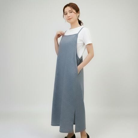 【ワンピースのようなエプロン】すっぽり被るだけ、ボタンレスで楽ちん。ワンピースのような、両脇スリットエプロン。【すっぽり被るだけ簡単】ボタンや紐がないかぶるタイプで、忙しい朝も着脱がスムーズな手軽さ♪【おしりまでカバー】ロング丈で気になるヒップラインをしっかり隠せる安心設計◎【両脇スリットで動きやすい】サイドにスリットがあるから、座る時も歩く時もストレスフリーな快適仕様!【ワンピース風デザイン】服のような見た目でおしゃれに着こなせる、ちょっとそこまでお出かけできるデザイン。【インド綿の心地よさ】綿100%のインド綿を使用し、肌触りが優しく毎日着たくなる。