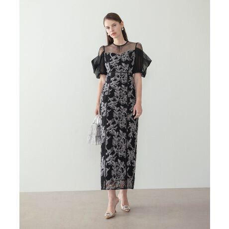 備考:スパンコール刺繍/ シアーパフスリーブ / Iラインシルエット