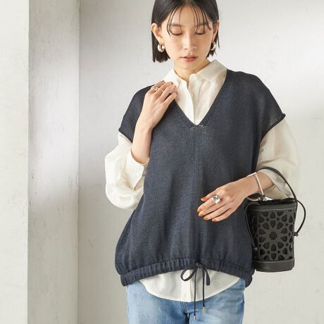 盛夏まで長く着られるペーパーアセテート素材のニットプルオーバー