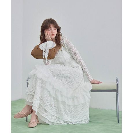 ヴィンテージライクなカットレースの構築的なフリル使いが印象的なキャミワンピース×ボレロセット。