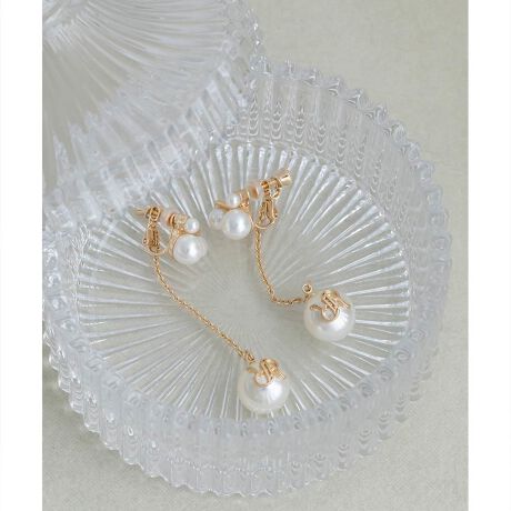 [型番:FA37090]<26春夏新作>POINT・モノグラムのパールがポイントのイヤリング・チェーンの揺れ感が女性らしい印象に・パーティーシーンなどドレスアップに◎