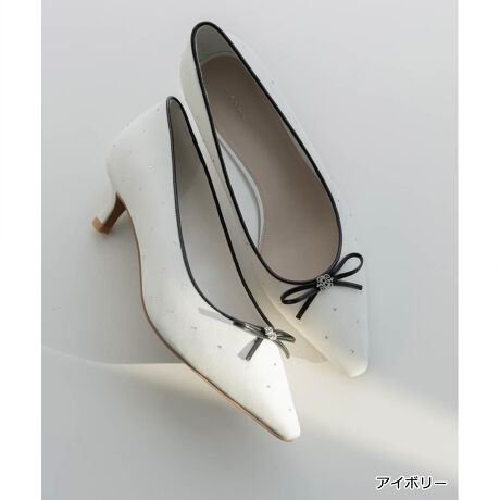 繊細な輝きのストーンを散りばめたリボンパンプス。