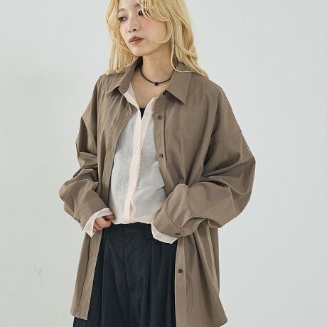 内側のシアー素材をタックインすれば、きれいめのレイヤードトップスとしても活躍します。色や素材感の強いボトムとも好相性。