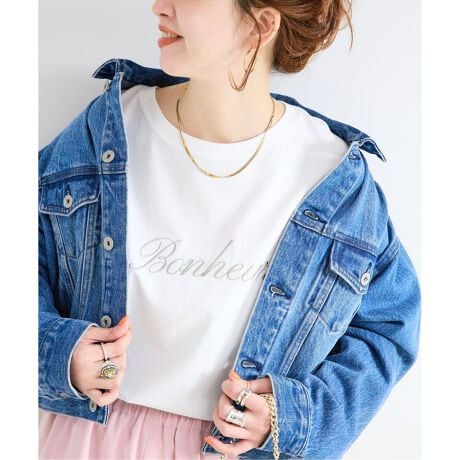 シンプルなボディに刺繍を施した、ベーシックに着回しのしやすいカットソーです。一枚着はもちろん、カーディガンや羽織り物から覗くロゴがアクセントにになります。