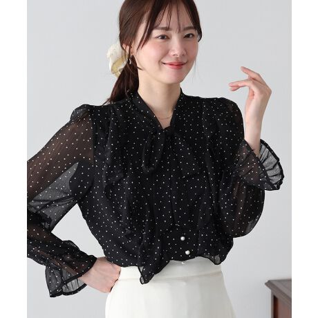 ハートドット×ボウタイが大人かわいいシアーフリルブラウス