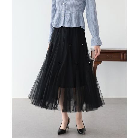 ビジュー付きチュールスカート