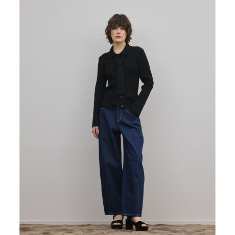 スタイリングに取り入れるだけで、一足早く春のムードを演出してくれる今季注目のバレルパンツ。 ややすっきりとした腰回りに膝周りにかけてボリュームを出した、カジュアルでありつつも程よく女性らしさを感じるシルエットがポイントです。 新しい差し色として注目のミントやアースカラーと相性の良いベージュは、加工感のある柔らかいツイル地を使用した、チノパンツ感覚で履けるデザイン。インディゴはあまり加工のない10オンスの綺麗めなデニムを使用し、配色ステッチを効かせた洗練感のあるカラー。 サックスはツイル素材にオリジナルのフラワープリントをのせたウォールペーパー調(輪郭をくっきり描かず、花柄の境界を“ほぐしたように”ぼかした)プリント 。カラーによって素材・加工が異なり、色違いで揃えたくなるアイテムに仕上げました。ショートブーツにパンツの裾をインした今年らしい着こなしや、裾をロールアップしてソックスを見せたり、ヒールを合わせたワンランク上の着こなしなど様々なコーディネートをぜひお楽しみください。