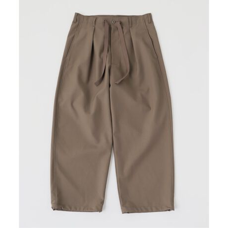 全体はゆとりのあるワイドシルエットながら、裾にはスピンドルを配し、シルエットの調整が可能。絞ることで足元に表情が生まれ、アクティブで変化のあるスタイリングを楽しめます。