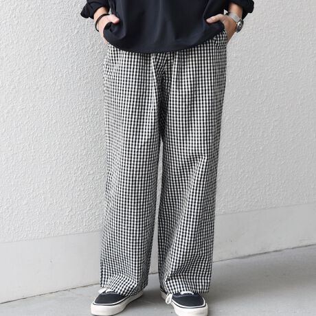 細かいチェック柄がポイント!ハリ感のある生地を使用したイージーパンツ