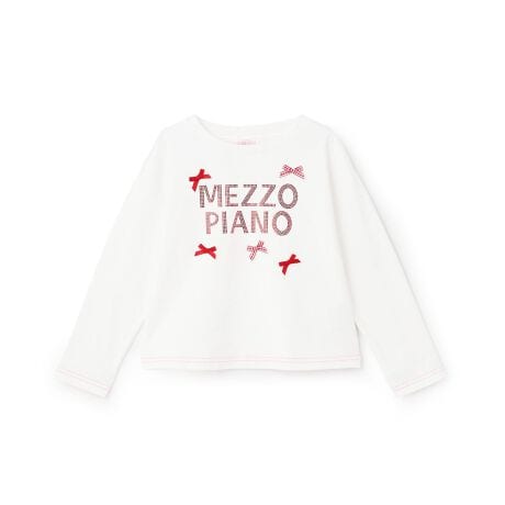 キラキラとしたラインストーンでロゴを表現した長袖Tシャツです。さまざまな種類のリボンをちりばめたお姉さんっぽいデザイン。上品な輝きがコーディネートのアクセントになります。裾口のラメステッチもさりげないポイントです。内側にお名前を記入できるタグつき。