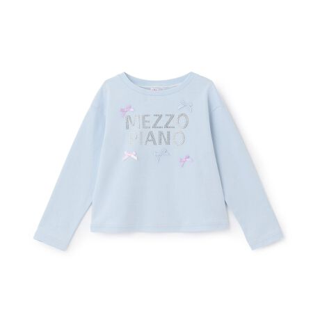 キラキラとしたラインストーンでロゴを表現した長袖Tシャツです。さまざまな種類のリボンをちりばめたお姉さんっぽいデザイン。上品な輝きがコーディネートのアクセントになります。裾口のラメステッチもさりげないポイントです。内側にお名前を記入できるタグつき。