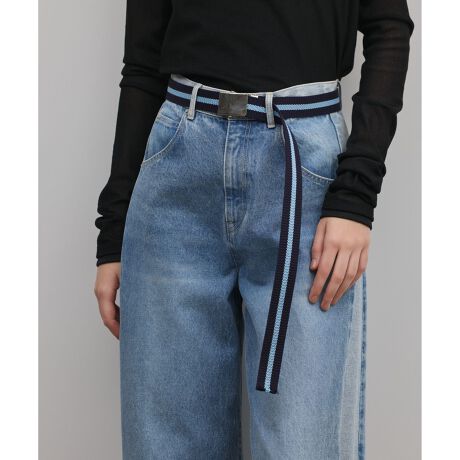 [型番:0326186511]ラインデザインのテープを使用したガチャバックルのベルト。バックルの裏面にブランドロゴを刻印。※こちらのモデル着用画像はサンプル品を撮影しております。実際の商品と仕様、加工、サイズが若干異なる場合がございます。予めご了承くださいませ。