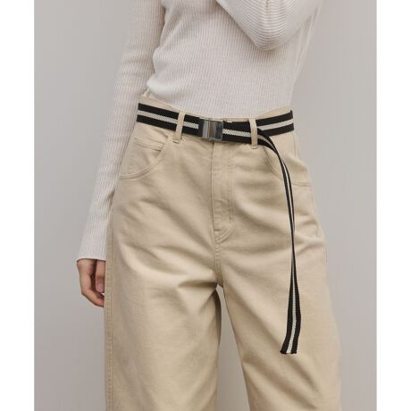 [型番:0326186511]ラインデザインのテープを使用したガチャバックルのベルト。バックルの裏面にブランドロゴを刻印。※こちらのモデル着用画像はサンプル品を撮影しております。実際の商品と仕様、加工、サイズが若干異なる場合がございます。予めご了承くださいませ。