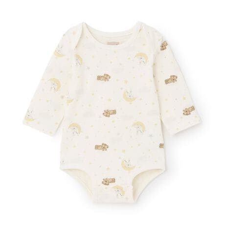 キャッチーな総柄デザインの長袖ロンパースです。かわいらしいモチーフをあしらい、それぞれ個性的に仕上げました。扱いやすいスナップボタンあきの設計で、お着替えもラクラク。やわらかなコットンベースの生地を使用しており、やさしい肌当たりです。【おすすめの着用時期は春夏シーズン】