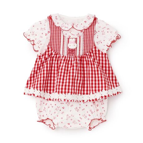 ウサギマスコットつきギンガムエプロン ロンパース