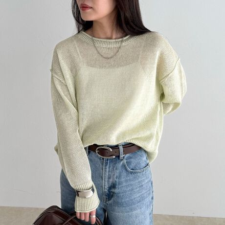 ・リネン100%のナチュラルな風合いが魅力のニットプルオーバー