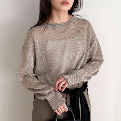 ・リネン100%のナチュラルな風合いが魅力のニットプルオーバー