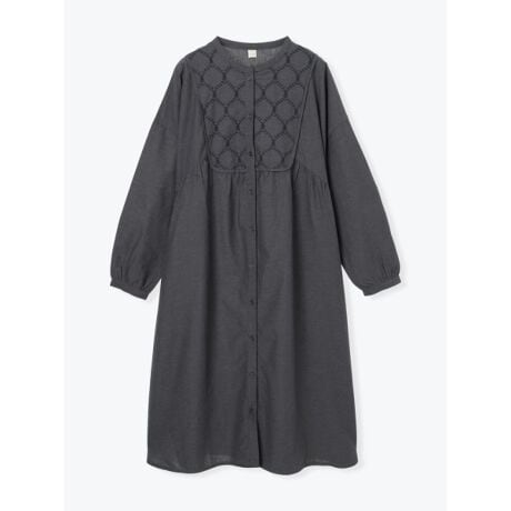 [型番:26410700410]ヨーク刺しゅうのデザインがスタイリングに表情感を演出するワンピース。ギャザー切り替えを施すことで、ふんわりとした立体的なシルエットを描きます。リネンを含むさらりとした着心地がポイント。季節の変わり目のお出かけシーンに大活躍してくれるアイテムです。Hare no hi/ハレノヒ
