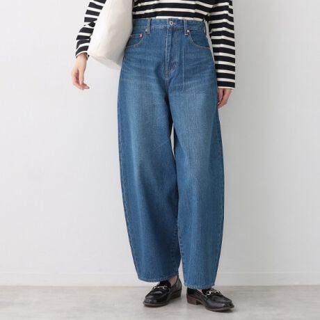 短丈トップスやコンパクトなアウターと合わせることで、ワイドカーブのシルエットが引き立ちます。