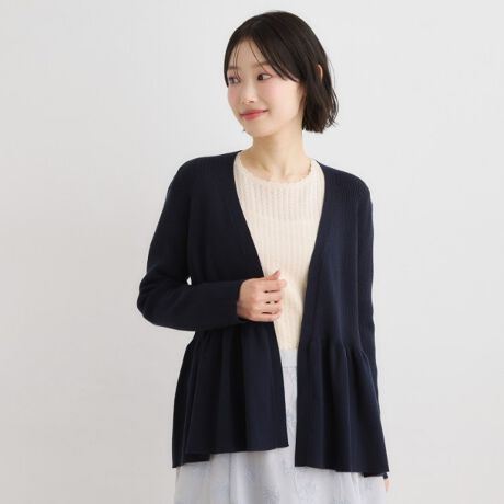 リブ編みで仕上げたミドル丈のカーディガンです。