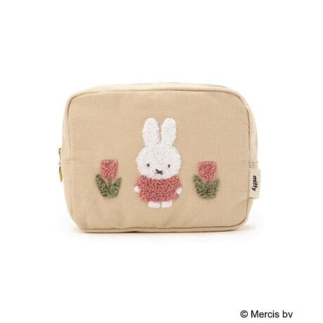 ミッフィーとイチゴやチューリップ柄が相良刺繍で施されたシリーズです。