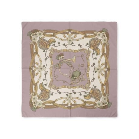 クラシカルな美しさが際立つ、馬具モチーフの上品スカーフは、表裏の色合わせをおこない、裏面まで美しく仕上げています。