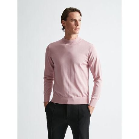 プレーティング編みという表裏の表情を変えることのできる編み方を用い、表側にはシルク、裏側には綿という構成で編み立てることで、シルクの高級感と綿の着心地をあわせもった仕上がりとなっています。