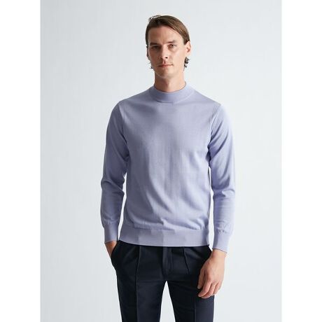 プレーティング編みという表裏の表情を変えることのできる編み方を用い、表側にはシルク、裏側には綿という構成で編み立てることで、シルクの高級感と綿の着心地をあわせもった仕上がりとなっています。