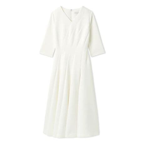 ウエスト下からはタックを入れ、裾に向かってきれいに広がる優雅なフレアシルエットに。
