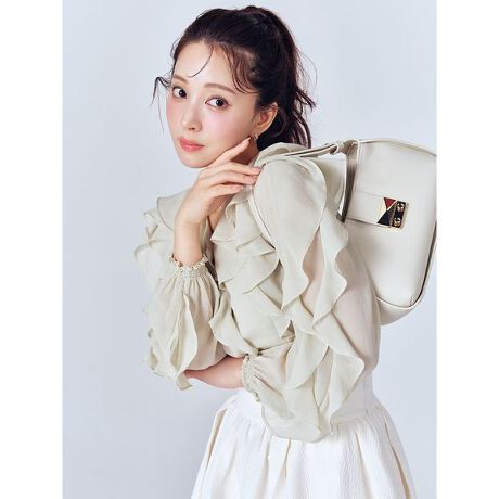ラッフルフリルを全体にあしらったシフォンブラウス。季節問わず着て頂けるような、絶妙な透け感のある素材を使用しています。全方位どこから見てもフリルが可愛いブラウスに仕上げました。