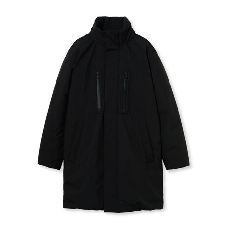 しなやかな撥水タフタを採用した、フード収納式スタンドダウンコート。
