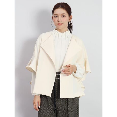 ケープのようにゆとりを持たせたシルエットで、重ね着してももたつかず、軽やかに羽織れるのが魅力。
