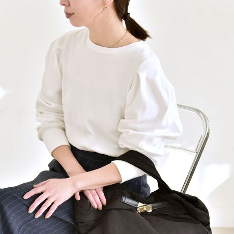 ショルダーにタックを施し、立体的なボリュームを出したシルエットがポイントのカットソー。