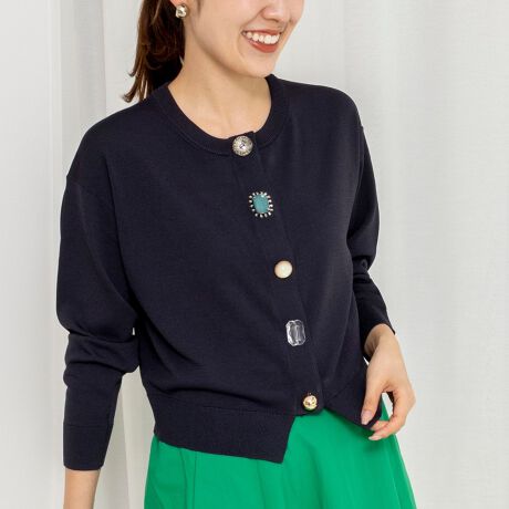・華やかで、それぞれ違うデザインのビジューが目を引くカーディガン