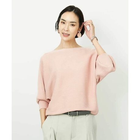 MICHEL KLEINを代表する名作ニット。 ご好評いただいている、リブを横使いしたボートネックのドルマンスリーブプルオーバーです。素材改良により、ふくらみのある風合いと美しく立つリブの畝を実現。縦方向の伸びと戻りが良く、着崩れしにくくなっています。ウエストのとまり位置は、合わせるアイテムやお好みに応じて調整でき、自然な着やせ効果も期待できます。すっきりとした衿元と、ドルマンスリーブの程よいゆとりが上品な印象を演出する一枚です。40サイズは限定店舗展開です。