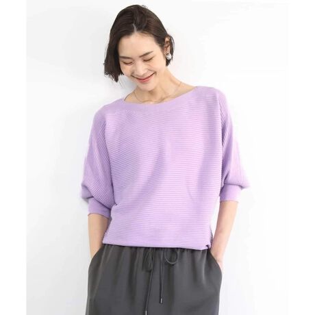 MICHEL KLEINを代表する名作ニット。 ご好評いただいている、リブを横使いしたボートネックのドルマンスリーブプルオーバーです。素材改良により、ふくらみのある風合いと美しく立つリブの畝を実現。縦方向の伸びと戻りが良く、着崩れしにくくなっています。ウエストのとまり位置は、合わせるアイテムやお好みに応じて調整でき、自然な着やせ効果も期待できます。すっきりとした衿元と、ドルマンスリーブの程よいゆとりが上品な印象を演出する一枚です。40サイズは限定店舗展開です。