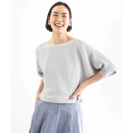 MICHEL KLEINを代表する名作ニット。 ご好評いただいている、リブを横使いしたボートネックのドルマンスリーブプルオーバーです。素材改良により、ふくらみのある風合いと美しく立つリブの畝を実現。縦方向の伸びと戻りが良く、着崩れしにくくなっています。ウエストのとまり位置は、合わせるアイテムやお好みに応じて調整でき、自然な着やせ効果も期待できます。すっきりとした衿元と、ドルマンスリーブの程よいゆとりが上品な印象を演出する一枚です。40サイズは限定店舗展開です。