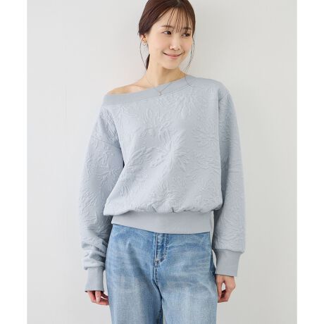 ・女性らしい抜け感を演出するボートネックデザインが魅力。