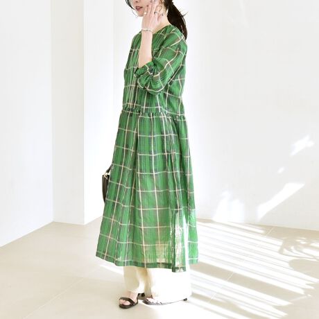 軽やかな空気感をまとう、チェック柄のロングワンピース。