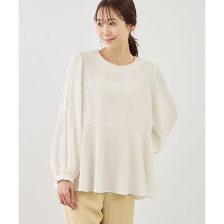 ・袖口近くでプリーツを消し、ふんわりとした女性らしいシルエットにこだわった上品な一着。