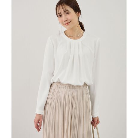 ・再生ポリエステル30%配合のポリエステル100%素材を使用し、サステナブルと上品な落ち感を両立したブラウス。