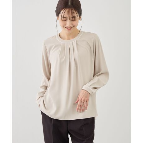 ・再生ポリエステル30%配合のポリエステル100%素材を使用し、サステナブルと上品な落ち感を両立したブラウス。