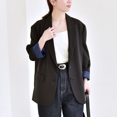 肩に適度な構築感を持たせつつ、身頃はゆったりとした直線的なラインで仕上げ、抜け感とモードさを兼ね備えた一枚。